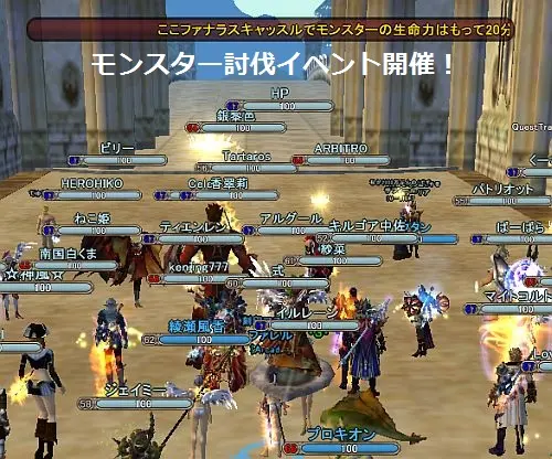 ファラナス セントラルエリアに集合して説明を聞いています。